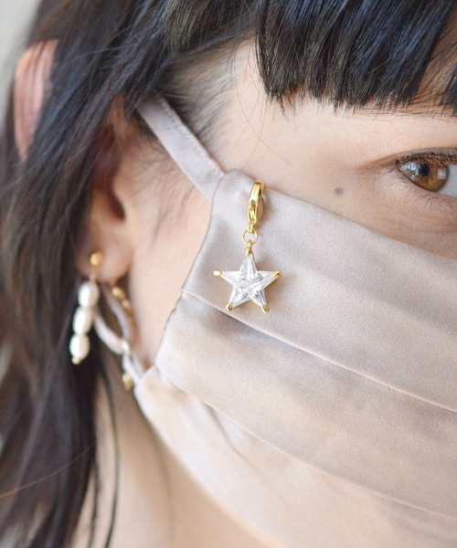 キラッと輝くスターで魅力あるマスク姿に シンプルで大人の女性にもオススメしたいアイテム。 普段のマスクにつけるだけで、お顔周りに輝きをプラスしてくれます。 当店のシルク製セレブマスクにはもちろん、不織布のみでの着用時にも◎ いつものマスクスタイルをワンランク上げてくれるアイテムです。 【 ma chere Cosette? 】"Cosette"とは、フランス語で「いらないもの」という意味。他人にとってはいらないものであっても、自分にとってはかけがえのないものというブランドテーマで、他にはないデザインのバッグやアクセサリー等を展開しています。 ※画像の商品はサンプルです。実際の商品と色味、仕様、サイズ等が若干異なる場合がございます。