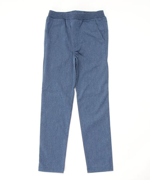 ナチュラルな風合いに仕上げた、ストレッチデニムのパンツ。ポリエステルのニットデニム生地は吸汗速乾性があり、原着の糸を使用することで堅牢度にも優れています。撥水加工により、多少の雨は弾きます。クライミングパンツなどで使われている切り替えパターンで、活発な足の動きにもスムーズに追従。ウエストはフィット感のよいゴム仕様。アウトドアシーンで活用できる機能性と、通学などのデイリーユースにも適したデザイン性を兼ね備えた1着です。