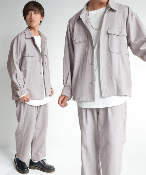 【ビッグサイズCPOセットアップ】 【Design/デザイン】 シンプルでカジュアルなファッションが好みの方にぜひ着てほしい 大人カジュアルを極めたCPOセットアップ。 ジャケットは無駄な装飾がなく、フロントのビッグポケットがアクセント。 レイヤードコーデにぴったりな程よい丈感で、こなれたコーディネートを楽しめます。 ワイドパンツはくるぶし辺りまでのやや短めの丈感で、足元をスッキリ見せることができます。 【Fabric/生地感】 コットン100%を使用した安心できる肌馴染みの良い素材。 程よい厚みの生地感がデイリー使いになる秘訣。 ■生地の伸縮性 ・・・ 伸縮しません。 ■生地の透け感 ・・・ 透けません。 ■生地の厚み ・・・ 標準です。 ■着用のサイズ感 ・・・ ■裏地の有無 ・・・ 無し。 ============================= 【お買い物をもっと便利に楽しく♪】 ■商品のお気に入り登録をすると・・・完売カラー・サイズの再入荷通知や、ラスト1点の通知、お得なセール情報も受け取ることができます! ■ブランドのお気に入り登録をすると・・・新商品や再入荷のお知らせなどいち早くブランドの最新情報を受け取ることができますのでご登録をオススメします!