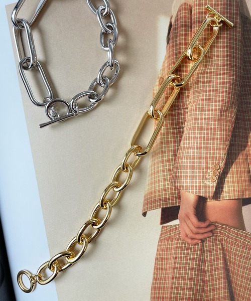 ■2021 AUTUMN & WINTER ITEM■ 異なる大きさのチェーンが一つになったブレスレット 2種類の異なるチェーンが連なったデザインチェーンブレスレット。 程よいボリューム感で手首を華奢に見せてくれ、付け心地も軽いです。 大きすぎないチェーンがハードすぎず女性らしいので、取り入れて頂きやすいデザインですよ。 - POINT - ・デザイン性のある2種のチェーンが連なったデザイン ・大きすぎないチェーンが女性らしさもあり ・程よいボリュームで手首華奢見え◎ 【 ♡ をクリックでお得な情報をお知らせいたします 】 〈 商品のお気に入り登録 〉 お気に入りアイテムのお値下げ・再入荷・在庫ラスト1点など通知を受けることができます。 〈 ブランドのお気に入り登録 〉 DOUDOUの新商品や再入荷、セール、クーポン配布などお得な情報を受けることができます。 -------------------------------------- ※ 掲載画像の商品の色味は、 撮影場所や光の当たり具合などにより色味が異なって見える場合がございます。 また、お客様のお使いのPC・スマートフォン等のモニター環境などにより色味が異なって見える場合がございます。予めご了承の上ご注文ください。 ※着用、お取り扱いの際は、商品についている品質表示とアテンションタグを必ずご確認下さい。