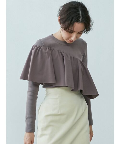 ■デザインポイント アシンメトリーに入った大きなフリルをドッキングした女性らしい華やかさとトレンド感が引き立つニットプルオーバー。 フリルは甘くなりすぎないよう異素材で高密度素材を使用しており程よくハリ感があります。 フリル位置はウエストまでしか入っていないのでスカートやパンツなどインスタイルも楽しめます。 ■スタイリングポイント ・ボデイ部分はタイトなデザインなのでINスタイルがおすすめ ・細いリブ仕立てがフェミニンすぎない印象を与えてくれるのでデニムやカジュアルなボトムスとの相性も○ --------------------------------------------------- 透け感:なし 裏地:なし 生地の厚さ:厚手 洗濯:手洗い可 伸縮性:あり ---------------------------------------------------【 ZOZOTOWNでお買い物を楽しむ便利機能 】♡商品のお気に入り登録完売カラーの再入荷時、ラスト1点の時、セール開始時にお知らせします。予約アイテムが入荷して通常販売になった時もお知らせしてくれます!その他お得な通知も盛りだくさんです。♡ブランドのお気に入り登録新商品や再入荷、セール情報など、いち早くブランドのお得な情報を受け取ることができます。ぜひご活用ください!