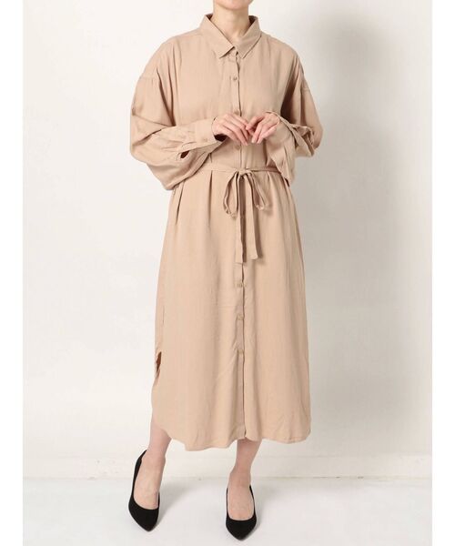 レーヨンを使用した、クタっと感が女性らしさを惹き立てるシャツワンピース。ボリュームのある袖が可愛いポイントです。足元はスニーカーでもブーツでも合わせやすい万能な1着。きちんと感もあるので、幅広いシーンでお使いいただけるアイテムです。