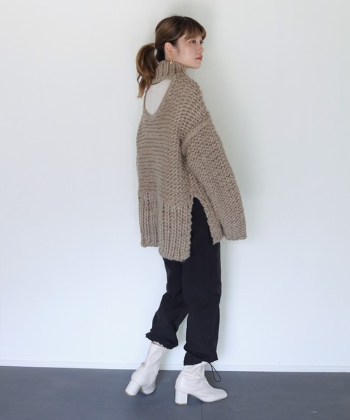 ざっくり編まれたあたたかみを感じるニットオリジナルのビッグロービング糸を使用したニットシリーズ。太い糸とざっくりとした網目が愛らしい印象を与えてくれます。ハンドメイド特有のあたたかみを感じられるニットです。大胆にざっくりと開いた背中から、肌見せやインナー見せするのが楽しい1着です。※撮影場所により、実際の色味と若干異なる場合がございます。 あらかじめご了承くださいませ。※糸の特性上ピリングができやすいアイテムとなります。あらかじめご了承くださいませ。【FABRIC】繊維そのもののふわっとした風合いを楽しめる1着。糸自体が太めなのでざっくりとしたかわいらしさが特徴的です。*************************************************************◆透け感:ややあり◆厚み:厚手◆裏地:なし◆伸縮性:あり*************************************************************【お買い物におすすめの便利機能】※商品のお気に入り登録完売カラーの再入荷時や、ラスト1点の時、セール開始時にお知らせ致します。※ブランドのお気に入り登録新商品や再入荷、セール情報等、いち早くブランドのお得な情報を受け取る事が出来ます。ぜひご活用ください。