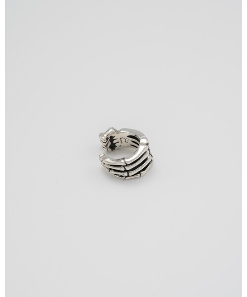 『Skeleton』 series 【商品説明】 人骨を忠実に再現した、手の骨が耳を掴むような形のイヤーカフ。 高度な彫刻技術で生み出されたシンプルながらも迫力のあるScat独自のデザインです。 艶出し加工によるシルバーの独特な光沢に加え、燻し加工を施すことによって表情に深みを出しています。 【素材】 SILVER925 燻し加工 【サイズ】 13/15/17/19 号展開 *モデル着用: 17号 【注意事項】 ●返品に関して 原則返品対応は致しかねます。 商品不備があった場合のみ、ご交換対応をさせていただきます。 ●金属アレルギーなど皮膚の異常に関して 体質により、かぶれやかゆみなど皮膚に異常が生じた場合は速やかに使用を中止し、専門の医師にご相談ください。 ●高温・寒冷地でのご使用に関して サウナ等の高温な場所やスキー場等の寒冷地では、火傷や凍傷を負う場合がありますので、必ず外してください。 ●ご着用について デザイン上、先の尖っている部分がある商品もございます。 スポーツ時の着用は、ご自身または他人に危害を加える恐れがありますので、外してください。 また、衣服の着脱時に突起部分が引っかかる恐れがありますので、必ず衣服の着衣後に装着・脱衣前に取り外してください。
