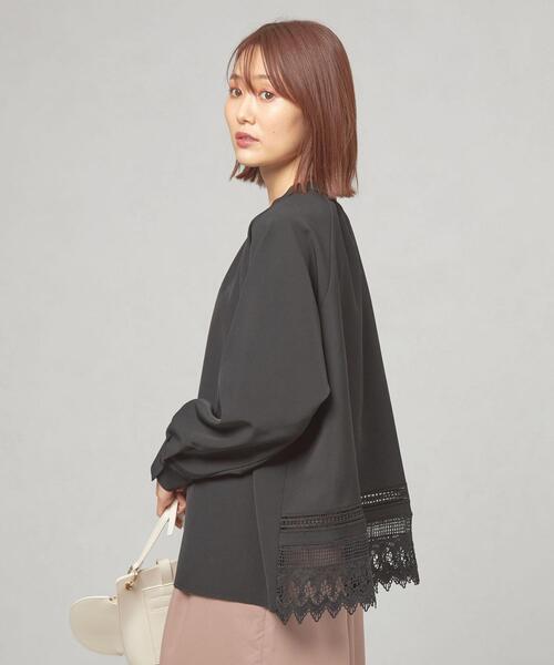 バックスタイルに注目!エレガントなレースをあしらったモノトーンブラウス ■デザイン 程よい透け感を愉しめる、エレガントなレースをバックスタイルに取り入れたブラウス。 ハシゴレースとスカラップレースをバランスよくデザインし、カジュアルな印象を残すバンドカラーにラグランスリーブでゆったりとしたシルエットに仕上げました。 ■素材 しっかりとした厚みのあるポリエステル混素材を使用しています。 裾のスカラップレースがポイントになっています。 ■コーディネート しっかりとした素材感なので、Tシャツやカットソーの上から羽織りとして使うのもおすすめ。 エレガントな雰囲気ながら、カジュアルなスタイリングもサマになる一枚です。 ============================ 裏地:なし 透け感:ホワイトはややあり 生地の伸び:なし 光沢感:ややあり ケア方法:手洗い可 ============================ <closet story(クローゼットストーリー)> フレンチシックとブリットモダンがテーマのオリジナル企画レーベル。 若々しさと可愛らしさをもったエレガントなスタイルをベースに、都会的で今日を生きる女性が「自分らしさ」を大切にしたいときに揃えたいアイテムを提案します。 【注意事項】 ※商品を使用前に、タグ等に記載されている「取り扱い上の注意書き」、「洗濯表示」を必ずご確認ください。 ※商品画像は、光の当たり具合やパソコンなどの閲覧環境により、実際の色味と異なって見える場合がございます。予めご了承ください。 ※商品の色味の目安は、商品単体の画像をご参照ください。 店舗へお問い合わせの際は、 全国のTHE STATION STORE各店舗まで下記の品名/品番をお申し付け下さい。 品名:CSC P/PU バックLACE SHT 品番:6911-699-0401