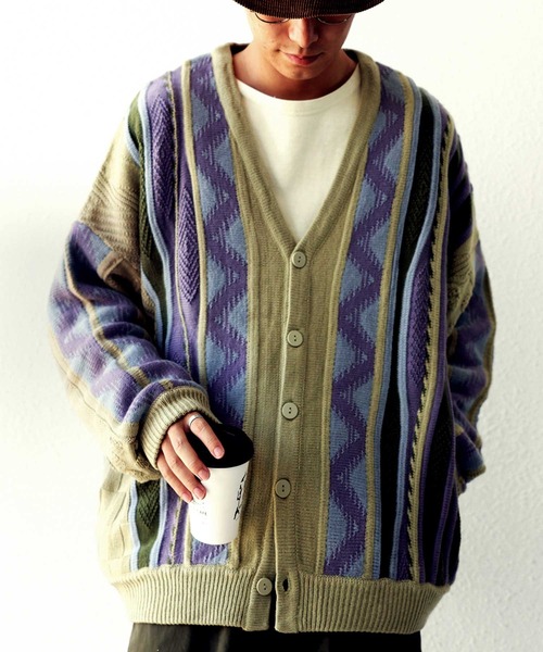 ▲▽▲▽ユニセックスitem▽▲▽▲あの大人気ニットの進化版!アートな立体編みがお洒落。 配色ジャガードニットカーデの登場です。 一枚で主役級の存在感放つ、古着っぽい雰囲気のジャガード編みカーデ。 プレッサー柄の総柄にくすみパステルの配色が絶妙な掛け合わせで◎!!! シルエットはゆったりざっくりと仕上げ程よいサイズ感だからアウターのインにも着込める♪ そしてマットな同色ボタンにすることですっきり見せてくれ、より編地が目立つんです! ふんわり軽く暖かいこの生地は繊維の中にたくさんの空気を含みウールライクな風合い。 立体的なラーベン編みは厚みのあるデザインだけど拘り素材で着心地も軽く仕上がりました! ただ羽織るだけでお洒落に仕上がる印象派カーデです! ※ニット製品のお洗濯・お取り扱いにつきまして。 ニット製品のお洗濯はネットに入れ手洗い後必ず「平干し」にてお取り扱い下さい。 ニット製品の性質上、ハンガーに吊っての吊り干しをしますと伸びる原因となります。 また保管の際もハンガーに吊っての保管は伸びる原因になります為、お避け下さい。 お洗濯、お取り扱いの際は上記点に十分にご注意ください。 ※柄の出方は生地の裁断により一点一点異なります。柄の繋ぎ目は全てはあっておりません。 ご指定は出来ませんのでご了承の上お買い求めくださいませ。