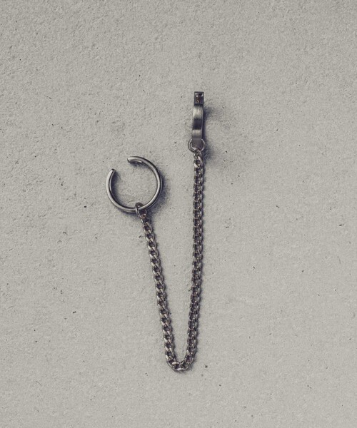 "ケーブルチェーンチャーム セット イヤーカフ" ベーシックなフープタイムのイヤーカフと、チェーンチャームがセットになったイヤーカフ。 ヘリックスと耳たぶをチャームでつなぐのが、おすすめのスタイル。 耳の縁に沿って揺れるチェーンが、視線を引き付けます。 フープはひとつはクリア、ひとつはマットと異なる仕上がりに。 ヘリックスにレイヤードするのはもちろん、1つずつ着けたり、耳たぶに留めてイヤリングにしたりと、何通りものスタイリングが楽しめます。 お持ちのイヤージュエリーとも合わせやすく、ひとつ持っておくとマルチに活躍。 ミックスカラーで着けると、こなれた印象に仕上がります。 ※シングル(片耳)販売の商品です。 ※イヤリングを外れにくくする、and cloudオリジナルのイヤーキャッチ(問合せ番号:(ZOZO)68330283 (店舗)00032001)を合わせてのご使用をおすすめいたします。
