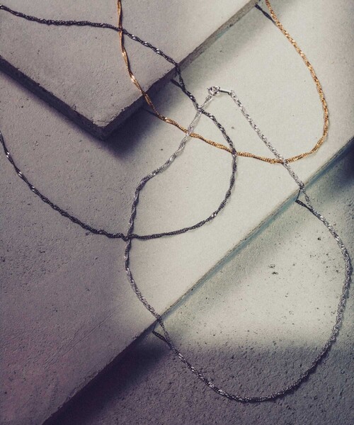"スクリューチェーンネックレス S" 多彩なデザインチェーンが揃ったコレクション。 ツイストされたカーブチェーンが華やかなきらめきを見せるネックレス。 空気をはらんだファブリックのように編み込まれたチェーンが、繊細な陰影を描きます。 サイズ直し:ダウンのみ可 ※カスタマーサポートまでお問い合わせください。 Screw Chain Necklace M(55cm)は(ZOZO商品コード:60753068)