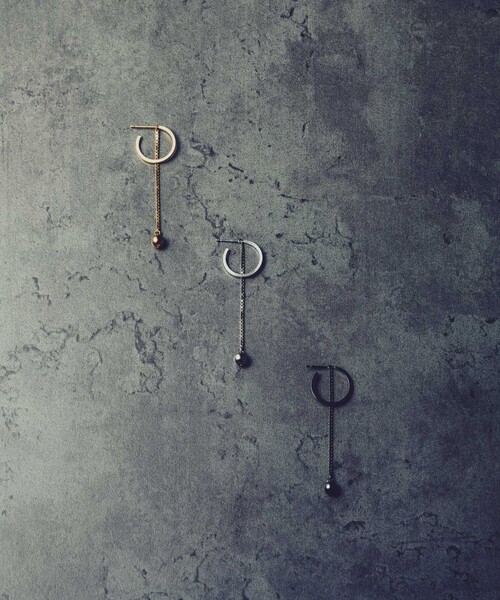 "2way ボールチャーム フープピアス" どんなスタイリングにも合わせられるフープピアス。 シンプルなフープとチャームがセットになったピアス。 直線的なラインを描くベネチアンチェーンに、ボールパーツをあしらったチャーム。 サークル×ラインのジオメトリックなデザインで、アーバンな表情をつくります。 チャームを外すと、シンプルなフープピアスとしても着けられます。 シングルピアスなので、両耳のデザインを揃えるのはもちろん、片側にはシンプルなスタッドピアスを合わせるのがおすすめ。 片耳にピアスホールがいくつかある方は、カラー違いやサイズ違いのフープをレイヤードしてこなれた印象に。 自由にスタイリングを楽しめるアイテムです。 ※シングル(片耳)販売の商品です。 両耳で着けられたい方は2点お求めください。