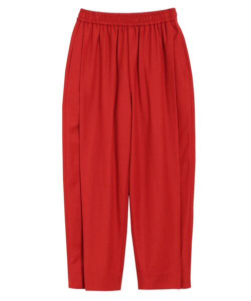 【ぱっとみスカートの様なシルエットがポイントのスカパン】 ギャザーたっぷりのラフなデザインに微光沢のあるサキソニー素材でカジュアル過ぎない上品な印象にす。 ぬけ感もありつつ合わせるトップスとシューズ次第でカジュアルにも綺麗目にも着まわせるデイリーに嬉しいアイテム。 【ウエストは裏のドロストリングで調整も可能で、ぐるりゴム仕様で履き心地抜群】 普段スカート派の方でもスカートの様なシルエットなので女性らしく履きこなせる。 トレンドがシンプルになりつつある今、ビビッドなレッド、パープルは履くだけで脱マンネリに。 【シンプルでいても1枚あると重宝するおすすめのアイテム】 ヒールやブーツなど女性らしいアイテムを合わせても◎ エレガンスなアイテムもベーシックなアイテムも合わせやすいパンツ。 ・・・・・・・・・・・・・・・・・・ 透け感:なし 裏地:あり 伸縮性:ややあり 生地の厚さ:普通 ・・・・・・・・・・・・・・・・・・