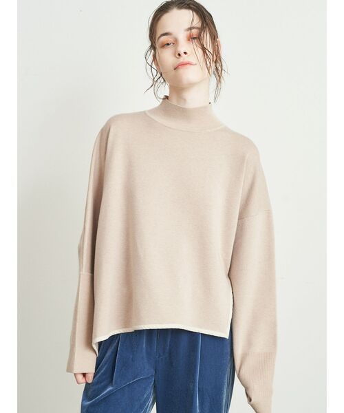 【トレンドをさりげなくプラス】 トレンドのフェイクレザーを過度にださずアクセントになるようなパイピング使いをしたニット。 アシンメトリーなデザインにする事で、ぬけ感のある印象に。 【シンプルなデザインがアウターを着ても邪魔をしない】 アウターを着る機会が増えるからこそシンプルな身頃デザインに。 アウターを脱いだ時に出るアシンメトリーのデザインがアクセントになる1枚。 プチハイネックが首元を暖かくしてくれるのも嬉しいポイント。 【パンツスタイルもスカートスタイルも楽しめるアイテム】 パンツスタイルとのコーディネートに特化した着丈ですがデイリーなデニムでもキレイ目スラックスでも様々なシーンに対応可。 サイドのスリットが深めなのでハイウエストがおすすめ。 ・・・・・・・・・・・・・・・・・・ 透け感:なし 裏地:なし 伸縮性:あり 生地の厚さ:普通 洗濯:手洗い可 ・・・・・・・・・・・・・・・・・・
