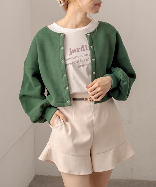 1枚でも羽織りでも使える! 着まわし力抜群のダブルフロントトップス♪ ■デザイン ・前後2WAY仕様で、羽織りとしても着れる着回し抜群のトップスです。 ・ゆったりネックで楽ちんな着心地と、クロップド丈ですっきりとした丈感でこだわりのシルエットです♪ ・無地なので合わせやすいのも嬉しいポイント。 ■スタイリング ・クロップド丈でボトムスを選ばずに、幅広いコーディネートが楽しめます♪ ・裏起毛で着心地も良く、気温に合わせてTシャツやハイネックインナーに羽織ったりと、シーズンオフで長く着て頂けるのが嬉しいポイントです。 ・ブラウスをレイヤードするとオリーブらしいカジュアルガーリースタイルが完成します◎ ----------------------------- 裏地:なし 光沢感:なし 透け感:なし 伸縮性:あり 生地の厚さ:厚手 ----------------------------- model:165cm ※着用、お取り扱いの際は、商品についている品質表示とアテンションタグを必ずご確認下さい。 ※ご覧のモニター環境や撮影環境により実際の商品と多少色味が異なって見える場合がございます。 ご理解の程よろしくお願いいたします。 ■お気に入り登録のおすすめ 【気になるアイテムを登録】 ハートをクリックしてお気に入りに登録すると 完売カラーの再入荷やラスト1点の通知、セールの通知を受けとることができます。 【ブランドを登録】 新商品や再入荷、セール通知など、いち早くブランドの情報を受けとることができます。