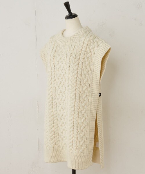 ざっくり編みが冬らしいニットベスト。ウール100%なので寒い時期に温かいほっこりした雰囲気に。サイドにボタンがあり、ボリュームのあるAラインデザインのワンピースやブラウスと合わせるときは外して着てもおすすめ。着丈は膝が少し出るくらいなので細身のパンツやデニムと合わせてカジュアルな印象にしても。アイボリーと黒の2色展開になります。《MR MITTENS》ベルギーとオーストラリアのプレミアムニットブランド。アントワープ生まれの創設者兼クリエイティブディレクターであるStéphanie CaulierがNYの編み物カフェとの出会いをきっかけに、オーストラリアで始めたブランドです。素材を100%ウールとピマコットンに限定し、ユニークな手編みのニットとアクセサリーをデザイン。すべてのラベルには‘Heartworking knitwear’というフレーズを刻んでいます。ブランド名はCaulierが愛した、古い子供向けのお話の主人公・”MR MITTENS”と呼ばれる猫に由来。import