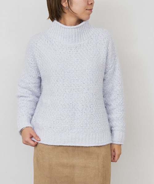 【2021AW】 年間通してのトップスの中で人気№1 "もちもち"モールシャギーニット ■デザイン ・身頃はリラックスしたサイズ感 ・ボトムスを選ばず活躍する着丈 ・編み地が凹凸があり、一枚でコーディネートの主役 ・首元のボトルネックが絶妙に女性らしさを引き立ててくれる ■素材 ニットなのに全くと言っていいほどチクチクせず、なめらかでとても質感が良いです。 毛足が長く、ふんわりと柔らかな質感が特徴のモールシャギーニットです。 程よいボリューム感と保温性のある素材感なので着心地も良く、つい触りたくなるような肌触りが魅力。 ■スタイリング ボトムは選ばず合わせれるので、女性らしいボトムからマニッシュなボトムまで幅広いスタイリングにマッチします。 ■商品品質 ・裏地:なし ・透け感:なし ・伸縮性:あり ・厚さ:やや厚め ・洗濯:- ◆商品画像について◆ 店頭及び屋外での撮影画像は、光の当たり具合で色味が違って見える場合がございます。 また、お客様のお使いのモニター環境により、実物と色味が異なる場合がございます。あらかじめご了承下さいませ。 ◆お気に入り登録について◆ ▽気になるアイテムは、ハートマークをクリックしておくことで、スムーズにお買い物が楽しめます。 ・ラスト一点のお知らせ ・再入荷のお知らせ ・予約商品が店頭に入る際にお知らせ ・SALEのご案内