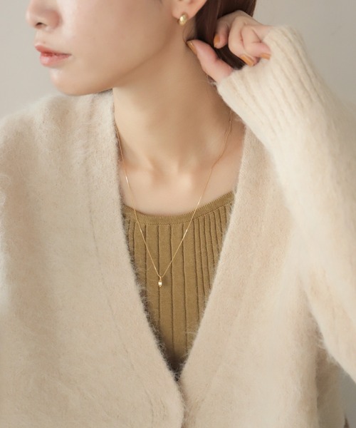 【rapiécage ラピエサージュ】 ■スライドチェーンハーフムーンネックレス 丸いパーツを半分にしたハーフ型モチーフ。細い線をロウ付けした飾り仕事が施されています。 手の込んだパーツは個性があり、小ぶりでも差のつくデザインに。丸みのある立体的なフォルムなので、ラフな印象につけていただけます。 チェーンはスライド式のエンドを使用することで、お好きな長さに調整可能。最長50㎝まで伸ばすことができ、チョーカーなどとの重ねつけも楽しめます。 カジュアルなスタイルはもちろん、ジャケットなどかっちりとした着こなしに抜けを作れるアイテムです。 ※商品はrapiécageオリジナルBOXに入れてのお届けになります。