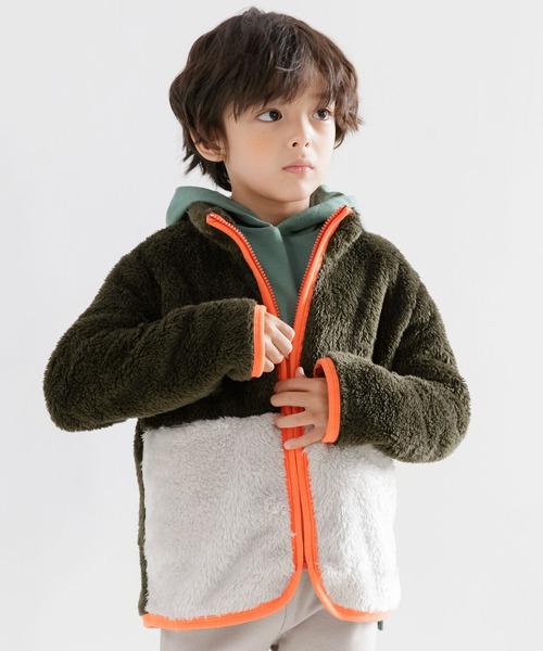 モコモコの生地感であったかく可愛らしいシルエットに♪落ち着いた色味でカジュアルスタイルにもなるので女の子も男の子も使いやすいアウター◎