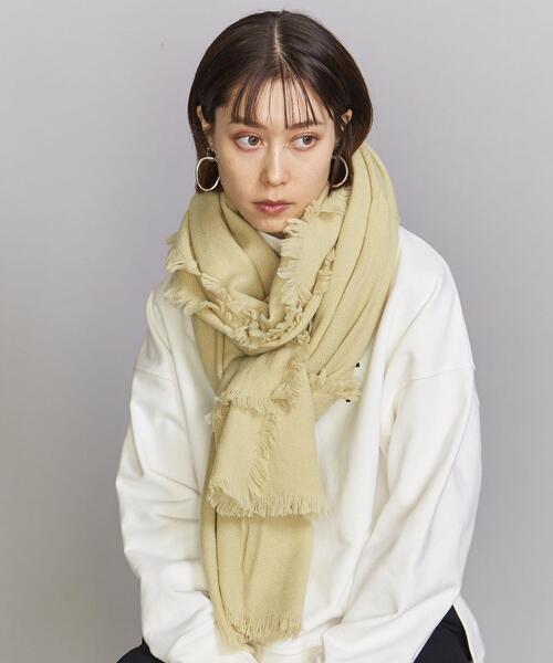 季節の変わり目に活躍するジャカードフリンジストールが登場。 ■デザイン ジャカード織のカジュアルな雰囲気と控えめなフリンジが、デイリーに使いやすいデザイン。 顔映りが明るく見えるよう、柔らかなカラーリングにもこだわりました。 ちくちく感の少ない、ふんわりとした肌触りも魅力。 寒暖差のある秋口に、さっと羽織るのにぴったりのストールです。 ■コーディネート オーバーサイズのシャツやニットに合わせた、カジュアルスタイルがおすすめです。 【注意事項】 ※商品を使用前に、タグ等に記載されている「取り扱い上の注意書き」、「洗濯表示」を必ずご確認ください。 ※商品画像は、光の当たり具合やパソコンなどの閲覧環境により、実際の色味と異なって見える場合がございます。予めご了承ください。 ※商品の色味の目安は、商品単体の画像をご参照ください。 店舗へお問い合わせの際は、全国のBEAUTY & YOUTH各店舗まで下記の品名/品番をお申し付け下さい。 品名:PK BY W JQD FRNG STL 品番:1836-699-2575