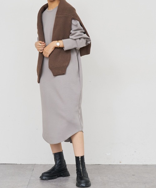 【2021AW】着心地快適、ボンディング素材のワンピース◆デザイン◆・万能に活躍する無地でシンプルなデザイン・これからの季節にブーツ合わせをしやすい着丈の長さ・首元は開き過ぎず寒いシーズンにも着やすいです。・袖口は少し窄まり上品な印象を与えます。アーム部分にボリュームがあるのでメリハリがプラスされアクセントに。・後ろの裾にはスリットが入り足さばきが軽やか◆素材◆滑らかで、ふんわりとした触り心地の良さが魅力のボンディング素材を使用しています。程よくハリがあってキレイ見えし、伸縮性があるので着心地がよく動きやすいです。◆スタイリング◆足元にはサイドゴアブーツを合わせると今年らしいスタイリングが完成します。少しカジュアルに、アクティブなスタイルにまとめたい時はハイカットスニーカー合わせを。シンプルな見た目なので肩にスウェットやシャツを合わせてこなれ感のあるスタイリングにするのもおすすめ。マフラーやストールで柄物やカラーアイテムを合わせたり、アレンジも楽しめるアイテムです。◆品質表示◆洗濯:洗濯可透け感:なし裏地:なし伸縮性:あり光沢感:なし◆商品画像について◆店頭及び屋外での撮影画像は、光の当たり具合で色味が違って見える場合がございます。また、お客様のお使いのモニター環境により、実物と色味が異なる場合がございます。あらかじめご了承下さいませ。◆お気に入り登録について◆▽気になるアイテムは、ハートマークをクリックしておくことで、スムーズにお買い物が楽しめます。・ラスト一点のお知らせ・再入荷のお知らせ・予約商品が店頭に入る際にお知らせ・SALEのご案内