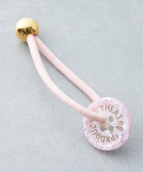 ◇THEATRE PRODUCTSからの別注コラボアイテムが21AWも登場!◇ シアタープロダクツのロゴがポイントのコートボタンを使用したヘアゴム。ポップなカラー展開が色違いで集めたくなるアイテム。コロンとしたゴールドのビーズもアクセントに!使わない時は手首に付けていてもおしゃれな嬉しいデザインです。※ボタン直径:3㎝、ゴムの長さ:8㎝気になった商品はお気に入り登録がオススメです! 入荷情報や、クーポン情報が通知されるようになります。※画像の商品はサンプルです。 実際の商品と仕様、加工、サイズ、素材が若干異なる場合がございます。【THEATRE PRODUCTS/シアタープロダクツ】「洋服があれば世界は劇場になる」をコンセプトに2001年設立。エレガントで女性らしいウエアと、ユーモアとウィットに富んだアクセサリーなどをとおして、ファッションブランドにおきるすべての出来事を舞台にあげてスポットライトを当てる。 デザイナーを武内昭と森田美和が務める。