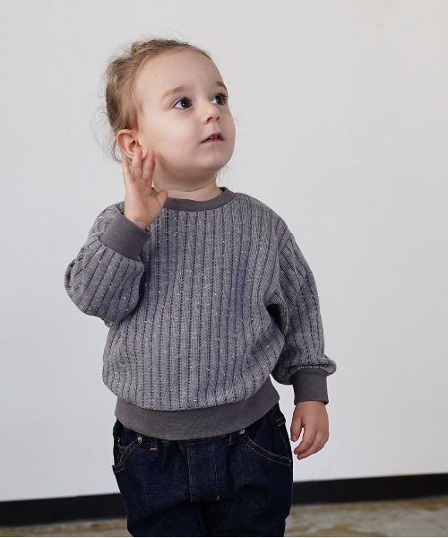 定番で展開している好評のスウェットが再び登場。身幅はゆったりめで、コンパクトに見えるよう着丈を短めに設定。秋冬では定番化しているこの素材ですが、肉厚すぎず柔軟で伸縮性もある為デイリーユースにおすすめ。今季は表面変化をつけるためRIB組織にしました。内側はオールポリエステル糸で編まれているので乾きやすく、冬にも最適な1枚です。