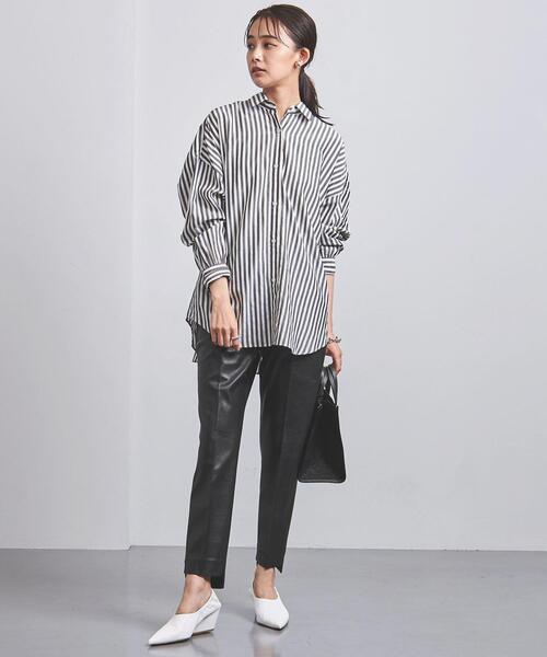 きれいな光沢とシボ感があるフェイクレザーパンツ。センタープレスのディテールやすっきりとした細身のシルエットで洗練された印象に。前後差のある裾のデザインがシャープさをプラスします。ハリのあるシャツやニットを合わせたり、異素材の組み合わせを楽しめるアイテムです。============================ケア方法:ドライクリーニング============================<INCOTEX(インコテックス)>パンツ専業のブランドとして、1951年イタリアのヴェニスにて創業したINCOTEX。下半身をスマートに見せる美脚シルエットに代表されるパターンのクオリティーは世界中で評価されています。 また、生地の選択、裁断、縫製、各過程にもこだわり唯一無二のブランドとしてその進化を重ねています。 【注意事項】※商品を使用前に、タグ等に記載されている「取り扱い上の注意書き」、「洗濯表示」を必ずご確認ください。※商品画像は、光の当たり具合やパソコンなどの閲覧環境により、実際の色味と異なって見える場合がございます。予めご了承ください。※商品の色味の目安は、商品単体の画像をご参照ください。店舗へお問い合わせの際は、全国のUNITED ARROWS各店舗まで下記の品名/品番をお申し付け下さい。品名:INCO TERESA F/LTHR 品番:1514-499-4960
