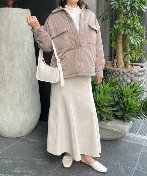 【StyleSea】 芦屋発ブランド「スタイルシー」。 シンプルで気負いのないシルエット、リラックススタイルで、流行に左右されないタイムレスなデザイン。 着心地に拘り、リラックスと都会的な間を楽しむ、女性らしさを忘れないライフスタイルブランド。 【Design/Fabric】 大人のカジュアルコーデに欠かせないキルティングアウターより、ステンカラーのCPOブルゾンが登場。 全面にキルトを施したトレンド感のあるデザイン。 中綿入りで保温性が高く、軽い着心地です。 スナップボタン、パッチポケットをあしらったユースフルなディティールで、普段使いに最適。 肩の落ちたドロップショルダーやオーバーサイズの身幅がリラックス感をプラス。 ボリュームスリーブや厚手のニットも着こめるサイズ感なので重ね着しやすく、ロングシーズン活躍します。 今季トレンドのサテンマーメイドスカートを合わせても◎ さらっと着るだけでコーディネートが決まる、取り入れやすい一枚です。 【スタッフ着用コメント】 《スタッフC》 身長:158cm/体型:普通(骨格:ストレート)/普段サイズ:M~L/着用サイズ:M サイズ感:丈はおしりがかくれる長さ、オーバーサイズなのでゆったりめで着れます コメント:大き目の襟と胸ポケットがポイントになってかわいいです! 【生地】―― 透け感:なし 厚さ:普通 伸縮性:なし ――――――― ―――お取り扱い上のご注意――― [色味・サイズについて] ご覧のモニター環境や撮影環境(光の照射や角度)により、 実際の商品と多少色味が異なって見える場合がございます。 また商品画像はサンプルのため、 稀にサイズ変更がある場合がございます。 予めご了承くださいませ。 [シワについて] 発送上の状態によって商品がシワになる場合がございます。 [においについて] 密封状態で入庫し、検品時に再度袋詰めを行っておりますが、 素材により染料等の臭いが若干残っている場合がございます。 使用していくと臭いが抜けていくのでご安心下さいませ。 [柄物アイテムについて] ・全ての柄のつなぎ目は合っておりません。 ・生地の裁断にて、柄の出方が1点1点異なります。 ※柄のご指定は出来かねます。 [色落ちについて] 商品により色落ち・色移りがある場合がございます。 品質表示を必ずご確認のうえ、 着用、お洗濯、保管をお願い致します。 《『♡』マークを押してお気に入り登録でお得な情報がたくさんゲット♡》 ―――――商品のお気に入り登録――――― ★ラスト1点のお知らせ ★再入荷 ★セール ★クーポン対象 ★お気に入りの商品コーディネートなど 様々な通知をお知らせいたします。 ――――ブランドのお気に入り登録―――― 【新作商品】【再販商品】など、 お得な情報を受け取ることができます♪ 是非ともお気に入り登録をお願い致します。 ※他のキャンペーンにより、期間中に価格が変動する場合があります。 ※セールは予告なく終了させていただく場合もあります。 ※ご注文いただいた予約商品のお届け時期の確認は、注文履歴ページより行えます。