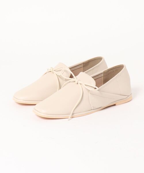 アッパーのリボンがポイントになった、きれい目デザインのシューズ。 履き口部分が広めなので足の出し入れがしやすく、インソールにはクッション性があり、軽く疲れにくい仕上がりに。 ベーシックなデザインで合わせるコーディネートを選ばず、さまざまなシーンで活躍する一足です。
