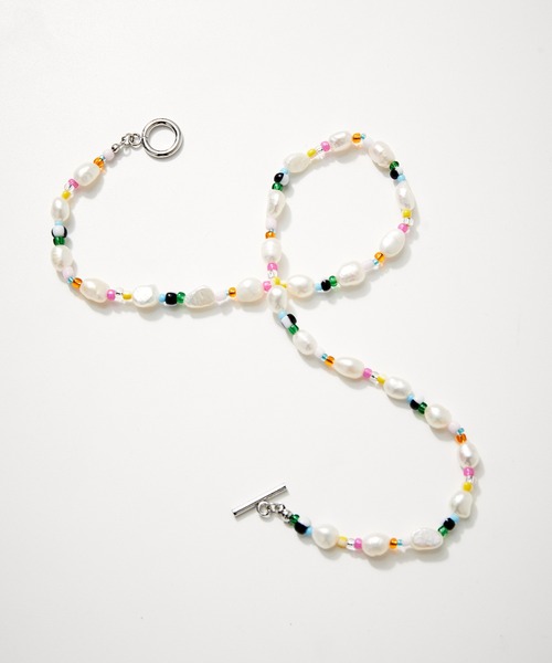 コーディネートへの取り入れやすさが魅力。淡水パールが女性らしさを彩りつつ、マルチカラーのビーズでフレッシュな印象も兼ね備えたネックレス◆2021-22秋冬◆ ADAM ET ROPE' FEMME 【Material】 淡水パール、ガラスビーズ、マンテル金具(ステンレス)、マルカンなどは合金。 【Desigh】 トレンドの淡水パールアクセサリーを、ラフなスタイリングにも合わせて楽しんでいただけるよう、配色にこだわったマルチカラーのビーズで、フレッシュな印象にアレンジしたネックレス。他のLES BIJOUXシリーズとの重ね付けが楽しみやすいバランスに仕上げられているのも嬉しいポイント。 【Color】 淡水パール×マルチカラービーズ×シルバー金具で仕上げられた1色のみの展開。 【Styling point】 どんなトップスにも合うネックレスですが、Tシャツなどのラフなトップスに付けて、コーディネートの格上げをぜひ。濃色トップスに合わせると、シックに仕上がるのでおすすめ。 《LES BIJOUX》 「宝石」という意味の名を冠したアクセサリーシリーズ ※画像の商品はサンプルです。お届けする商品に仕様・サイズ等の変更が生じる場合がございます。予めご了承ください。 ※ロケ撮影画像は、光の当たり具合で色味が異なって見える場合がございます。商品の色味は、スタジオ撮影の画像をご参照ください。