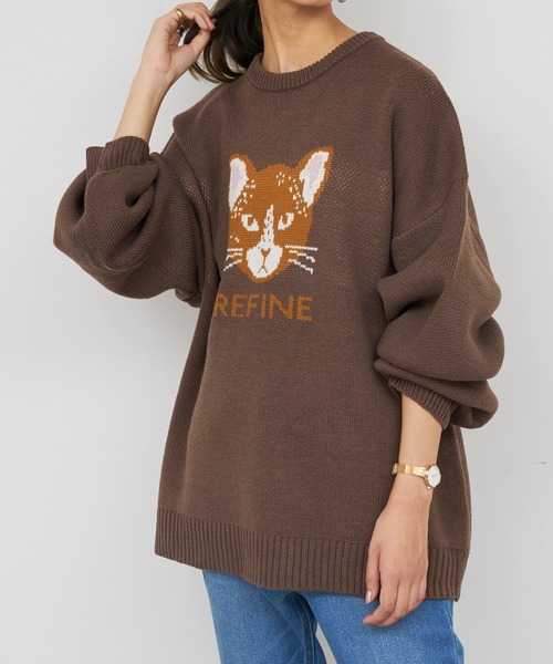 【2021AW】 胸元に癒しを!ネコジャガードニット ◆デザイン ・身体のラインを拾わない、ゆったりとしたシルエットに仕上げたニットプルオーバー ・ベースのニットと異素材のフェザーを使用することで立体感を表現したクロネコジャガードがポイント ・袖のボリューム感がトレンドライクなシルエット ◆スタイリング 着丈も長めのにっとなので、シンプルに細身のラインのパンツスタイリングがおススメ。 特にデニムとの相性は良いです。 これからの時期に羽織りものとスタイリングしても、アウターの胸元からネコちゃんがひょっこり現れます。 ◆品質表示◆ 洗濯:手洗い可 透け感:なし 裏地:なし 伸縮性:あり 光沢感:あり ◆商品画像について◆ 店頭及び屋外での撮影画像は、光の当たり具合で色味が違って見える場合がございます。 また、お客様のお使いのモニター環境により、実物と色味が異なる場合がございます。あらかじめご了承下さいませ。 ◆お気に入り登録について◆ ▽気になるアイテムは、ハートマークをクリックしておくことで、スムーズにお買い物が楽しめます。 ・ラスト一点のお知らせ ・再入荷のお知らせ ・予約商品が店頭に入る際にお知らせ ・SALEのご案内