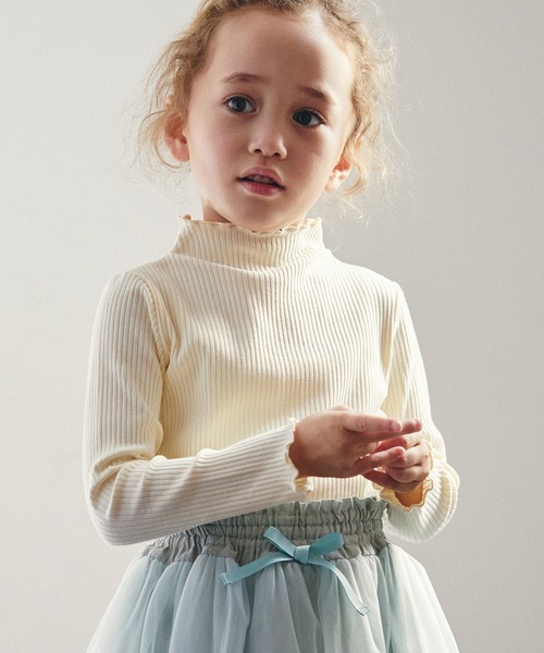 伸び良く着やすいストレッチリブ素材インナーとしてコーデしやすいハイネック型裾や襟にはかわいいアクセントとなるメロー仕上げ【対象月齢】80cm:12から18カ月90cm:18から24カ月100cm:3から4才110cm:4から5才【お手入れ方法】・液温は40℃を限度とし、洗濯機で非常に弱い洗濯ができる・塩素系及び酸素系漂白剤の使用禁止・タンブル乾燥禁止・日陰のつり干しがよい・アイロン仕上げ禁止・パークロロエチレン及び石油系溶剤による弱いドライクリーニングができる【注意事項】・タンブル乾燥機は使用しないで下さい・漂白剤や蛍光増白剤を配合した洗剤は使用しないでください・洗濯ネットをご使用ください。