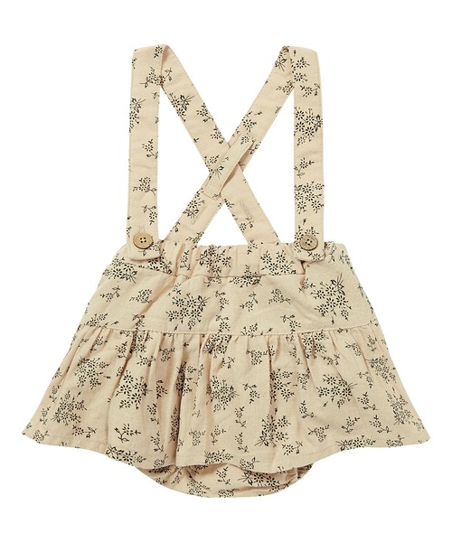 コーディネートの幅が広がるサスペンダー付きレトロおしゃれな小花柄サスペンダーは取り外し可能【対象月齢】6から18カ月【お手入れ方法】・液温は40℃を限度とし、洗濯機で非常に弱い洗濯ができる・塩素系及び酸素系漂白剤の使用禁止・タンブル乾燥禁止・日陰のつり干しがよい・アイロン仕上げ禁止・ドライクリーニング禁止【注意事項】・タンブル乾燥機は使用しないで下さい・顔料プリントは強く摩擦すると脱落しますのでご注意下さい・プリント部分を伸ばしますと、プリントが割れたり、脱落しますのでご注意下さい・漂白剤や蛍光増白剤を配合した洗剤は使用しないでください・洗濯ネットをご使用ください