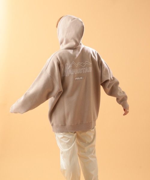MILKFED. × MANASTASH /ミルクフェド×マナスタッシュ SWEAT HOODIE スウェットフーディー パーカー MANASTASHとMILKFED.のコラボレーションが実現!! MILKFED.のオーバーサイズシルエットのボディを使用した、ユニセックスで着て頂けるパーカー。 フロントには両ブランドの刺繍が、バックには両ブランドのプリントが大きめに入っています。 カラーはブラック、ナチュラル、ベージュの3色をご用意! どのカラーもおススメのコラボパーカーです! 【MILKFED./ミルクフェド】 「エレガント」「カジュアル」をコンセプトに日常で見慣れたベーシックアイテムに ガーリーな味付けをしたワードローブ。 流行をリアルなスタイリングに落とし込み、 シンプルな中にオーラが漂うエイジレスな女性のカジュアルスタイルを提案します。 【MANASTASH/マナスタッシュ】 MANASTASHは1993年設立の米国シアトルのアウトドアブランド。 その理念は、環境に優しい素材、例えばヘンプやリサイクルフリースを使用して最高のウエアとギアを作ることです。 偉大なるカスケード山脈から駆け落ちるマナスタッシュ山高原ではスキー、トレッキング、マウンテンバイク、ラフティング、カヤックなどワイルドで多様なアウトドアスポーツが楽しめます。 フリーダムをベースとしたライフスタイルを代表する、実用的でスタイリッシュ、そしてハイクォリティなウエア。 山、川、そして道…MANASTASHは、自然環境の中で情熱を追いかけているすべての人々と繋がっています。
