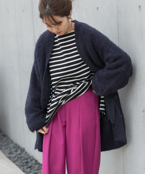 ゆるっとしたシルエットが大人の抜け感を演出 【Design】 肩を落としたオーバーシルエットでトレンドのゆる感が叶うカーディガン。 毛足長めのほっこりとした柔らかな風合いが、見た目にも女性らしく優しい印象を与えてくれます。 袖や身幅に余白を持たせたゆったりめのシルエットは、厚手のアイテムと合わせてももたつかずスッキリと着用可能。 【Styling point】 デイリー使いのパンツ合わせはもちろん、ちょっとしたお出掛けにはワンピースに◎ 色んなスタイリングにも纏うだけでワンランク上の着こなしが完成。 今季は、カーディガンをバサッと肩に羽織ったり、肩で袖を結ぶことで2WAY・3WAYと着こなしの幅が広がります。 【Material】 ニットカーディガンには珍しく裏地がついているので、着脱しやすく暖かく着用できます。 -LAATO- ”わたしはわたし"をコンセプトとし、 トレンドを意識するのではなく、自分の中で着たい服を確立している人をイメージ。 大人の女性のなめらかさや艶やかさを表現するデザインや、柔らかいカラーが特徴的なブランド。 シーズン:2021 A/W model : 162cm 着用サイズ : FREE ----------------------------- 《スタッフ着用コメント》 [スタッフA] 年齢 : 20代前半, 身長 : 165cm, 体型 : 普通 普段の着用サイズ : M 【着用カラー/サイズ】ミッドナイト/FREE 【サイズ感】165センチでお尻すっぽり隠れる丈になります。アームホールがゆとりがあるので中に着込むのもできそうです。 【素材感, 着心地】裏地付きで着脱もしやすく、重さも感じにくいので楽にお召しいただけます。オーバーシルエットで可愛いです。 [スタッフB] 年齢 : 20代後半, 身長 : 155cm, 体型 : 普通 普段の着用サイズ : S,M 【着用カラー/サイズ】ネズミ/FREE 【サイズ感】身長155cmでヒップがすっぽり隠れる長さで暖かみがあります。ゆったりとしたサイズ感の為リラックスしてお召しいただけます。 【素材感, 着心地】裏地が付いているのでするっと羽織っていただくことができます◎ ----------------------------- ※商品画像は、光の当たり具合やパソコンなどの閲覧環境により、実際の色味と異なって見える場合がございます。予めご了承ください。 ※商品の色味の目安は、商品単体の画像をご参照ください。 ▼お気に入り登録のおすすめ▼ お気に入り登録商品は、マイページにて現在の価格情報や在庫状況の確認が可能です。 お買い物リストの管理に是非ご利用下さい。 ----------------------------- 透け感:なし 伸縮性:ややあり 裏地:あり 光沢:なし ポケット:なし -----------------------------