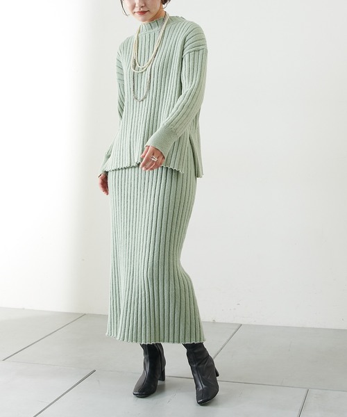 ★リラクシー×上品さ漂うニットセットアップ 上下で決まる上品な大人ニットセットアップ。締め付けすぎずゆるやかに沿うボトルネックはノンストレスな着心地。 スカートはIラインのすっきりシルエットで洗練された上質な雰囲気に仕上がります。 別々でもお使い頂けるのでワードローブにあるとコーディネートの幅がグッと広がる万能アイテムです。 ・やわらげで上品な色展開は女性らしさを引き立てます。 ・リブの縦のラインで細見え効果◎ ・スニーカー合わせでカジュアルコーデにもお使い頂けます◎ ●素材 ポリエステル 100% ◆スカートサイズ 着丈:85cm ウエスト:67cm(ウエスト総ゴム) スリット丈:25cm ☆☆☆☆☆☆☆☆☆☆☆☆☆ 透け感:なし 裏地:スカートのみあり 伸縮性:あり 光沢感:なし ☆☆☆☆☆☆☆☆☆☆☆☆☆ 【気になる商品は「お気に入り」登録を】 ハートマークをクリックし、お好きなカラーを選んでお気に入りに登録すると 入荷情報や残り1点の通知、完売カラーの再入荷、セール情報などを受け取ることができます。 ※撮影場所やお使いのモニター環境により若干お色味が異なる場合がございます。 特にロケの撮影では明るく見える傾向にございます。詳細撮影画像で色味をお確かめくださいます様お願いいたします。 ※サンプルで撮影をしております。若干の仕様が変更になる場合がございますので予めご了承の上ご注文くださいますようお願いいたします。 ※サンプルでの採寸のためあくまで目安となります。予めご了承ください。