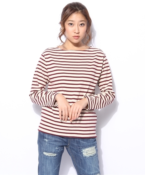 肉厚なしっかりとした天竺生地を使用したボーダー長袖Tシャツ。 シルエットはスッキリとしたスリムライン 一枚は勿論ジャケットのインナーとしても使える万能アイテムです。 シーズンを問わず着用して頂けるのも魅力です。