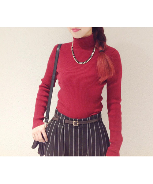 goocy(グースィー) 冬の定番リブハイネックニット。アンゴラ羊毛混なので保温性もあり、インナーに最適のニットです。裾部分に金のロゴプレートがさりげなく上品さをアピール♪ビッグシルエットのアウターや、ボトムがトレンドの今季ならではの、マストアイテム☆