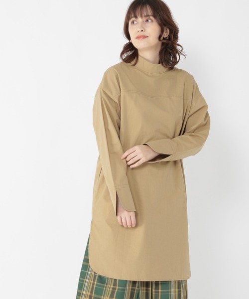 ーーー スタンドネックがデザインポイントの2WAYチュニック。 襟をしっかり上まで閉めて着ていただくとマニッシュ感のある今年らしい着こなしに。 ーーー ヒップがすっぽり隠れる着丈とゆったりとした見幅がこなれた雰囲気を演出◎ パンツに合わせたコーディネートがおすすめです。