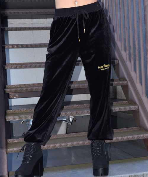 ☆baby Shoopオリジナルアイテム☆ ベロア刺繍ロゴロングパンツ☆★ とっても履きやすくてヘビロテ間違いなし☆ セットアップとしてはもちろん、単品使いもおすすめ!! 柔らかなベロア生地で着心地◎だよ!! 刺繍がインパクト大で超CUTE★ ストリート系スタイルコーデにはもちろん、ヒップホップなどのダンスウェアとして ダンスパンツにもおすすめです♪ モデル身長約164cm