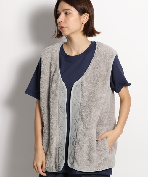 [NATOKii 2021AW] この時期ならではの素材感を楽しむベスト シーズンムードを盛り上げるボアフリース素材のベスト。 着回しやすいアースカラーに、フロント開きのデザインなので様々なスタイリングが楽しめます。 気軽に羽織れる軽くてやわらかい仕上がり。 アウターとしても、コートのインにもオススメです。 【NATOKii(ネイトゥーキー)】 ヨーロッパやアメリカの雰囲気を感じるWORK、TRAD、MILITARYのアイテムを〈niko and ...〉らしく仕上げたコレクションです。