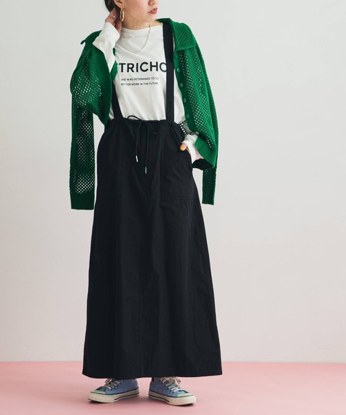 取り外し可能なベルトで雰囲気が変わる! ジャンパースカート 【デザイン】 トレンドのストレートシルエットのスカートながら、 ボディラインを拾いにくい仕様にしております。 ウエストは紐で調整可能なので、サイズフリー。 また紐がカジュアルな印象に。 後ろポケット付きでスタイルアップ効果もありながら、 利便性も。 肩紐は長さ調節や取り外しが可能なので、印象を変えてご着用いただけます。 バックスリットも入っているので、動きやすさも◎ 【素材】 シャリ感があり、 シワになりにくくお手入れが楽なナイロン混素材。 年中使える素材が嬉しいポイント。 【スタイリング】 ジャストサイズのニットやブラウスで、 ストレートシルエットを活かしたコーディネートに。 羽織はサイズ感のバランスを楽しめる、 ゆったりとしたカーディガンがおすすめです。 もちろんカジュアルなスウェット合わせで、 スポーティーなスタイリングも◎ ※ご覧のモニター環境により、画像の色味と多少異なる場合がございます。 ----------------------------- 透け感:なし 生地の厚さ : 普通 伸縮性 : なし 裏地:なし 光沢:なし 洗濯:手洗い推奨 ----------------------------- ※詳しいお手入れ方法は商品タグをご参照ください。