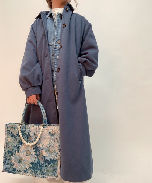 着るだけでお洒落みえビッグシルエットのつぼみ袖ロング丈コートです。 厚手のニットの上からでも楽に羽織れるゆったりとしたデザインは肩周りの窮屈感をなくし、疲れにくく楽な着心地を実現しました。 オーバーサイズながらも手首はタック入りですぼませ、だらっと見えない上品かつクラシカルな印象です!
