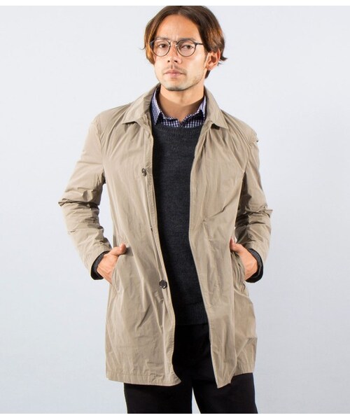 さらっとした肌触りが特徴的なミリタリー風のメモリーコートが少し地厚になりました。軽やかな素材感は、さらっと羽織れるのも魅力的。襟元部分にもこだわり、カジュアルすぎないデザインもポイントです。