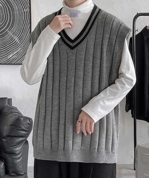 ■オーバーシルエットで着こなす今季注目のニットベストコーディネートの幅を広げてくれるベストはシャツやカットソーとの相性抜群。リブのラインとストライプで表情を持たせ、シンプルになりすぎないところも魅力◎オーバーシルエットでゆったりとした着心地に仕上げています。==============================【より良いお買い物サービスを】▼商品のお気に入り登録完売カラーの再入荷通知や、ラスト1点の通知、セールの通知も受け取ることができます。▼ブランドのお気に入り登録新商品や再入荷等、いち早くブランドのお得な情報を受け取ることができます。※撮影場所やイメージにより、実際の商品と色味が若干異なる場合がございます。※サイズに若干の個体差が生じる場合がございます。※当商品は機械による生産の過程上、どうしても"生地を織る際の糸の継ぎ目"や多少の"ほつれ"、他繊維の"混紡"、また、形やサイズや柄に多少の"誤差"が生じる場合がございます。※他のキャンペーンにより、期間中に価格が変動する場合があります。※セールは予告なく終了させていただく場合もあります。※ご注文いただいた予約商品のお届け時期の確認は、注文履歴ページより行えます。※他のキャンペーンにより、期間中に価格が変動する場合があります。