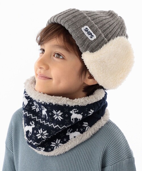 フェイクファーの耳当て付きで見た目にもほっこり暖かいリブワッチキャップです。 紐を解いて耳当てをおろしても可愛らしく、防寒にも大活躍! 「SHIPS」のロゴワッペンがアクセント♪