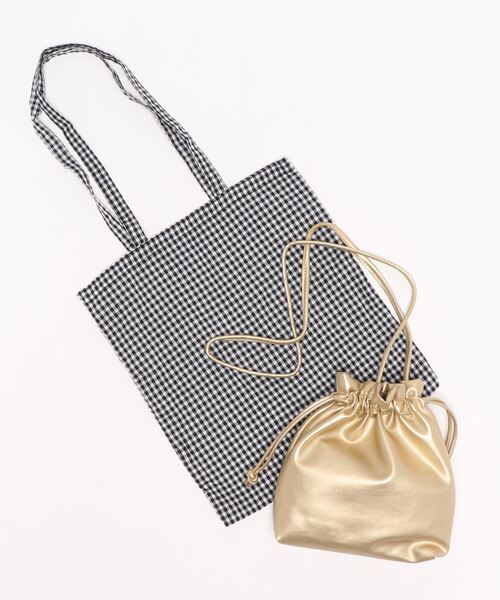 カシュカシュ cache cache / ギンガムチェックトート付き巾着ショルダー■デザイン&ポイント柔らかな合皮を使用した巾着ショルダーバッグ。どんなコーディネートにも合わせやすいシンプルなデザインです。ギンガムチェックのエコバッグがセットになっています。■アテンション・素材特有のにおいがする場合がございます。においが気になる場合は一度陰干しをされた上でご使用ください。■ブランドコンセプト-- cache cache / カシュカシュ --カシュカシュとはフランス語で「かくれんぼ」。ガーリッシュとちょっと背伸びをした大人っぽさをミックスしたデイリーカジュアルなファッション小物を展開。カラフルで素朴なハンドクラフトやかわいらしいモチーフ使いで、洋服とのコーディネートに可愛らしさと遊びをプラスするバッグを提案。■商品のお気に入り登録をお願いします【カートに入れる】横のハートマークをクリック再入荷やラスト1点のお知らせ、セール情報などのお知らせを受け取ることができます