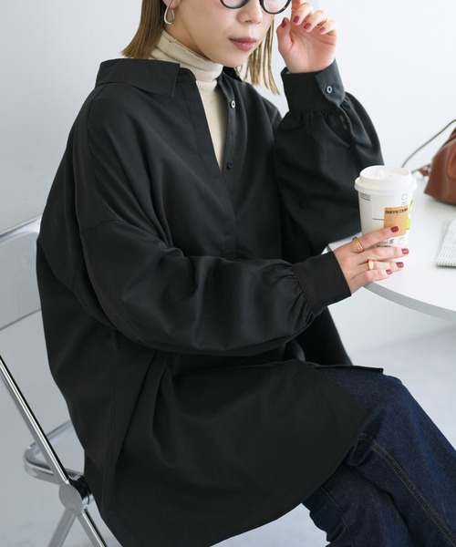 \\ WEB限定アイテム!!//旬のビッグシルエットでこなれた着こなしが楽しめるベーシックシャツ。身頃を覆うチュニック丈のビッグシルエット、スリーブにもボリュームがあり女性らしいオーバー感を楽しめるベーシックアイテム。コットン生地に比べ柔らかくシワが気にならない混紡生地、適度に厚みがありながらもボディラインに馴染みやすく、シーズンに合わせて幅広く着回しが可能。デイリーユースに万能なホワイト、ブラックの2色展開、シャツとして一枚着はもちろん、羽織としてもレイヤードスタイルに重宝します。COORDINATEボタンを閉じて上品に、第一・第二ボタンを開けて、羽織としてはインナーをキャミソールやタンクトップにすることで大人ヘルシーに、合わせるアイテム次第でベーシックコーデをワンランクアップさせてくれます。インナーにTシャツやタートルネックトップス、上からベストやセーター・カーディガンを合わせてカジュアルに、レイヤードスタイルも幅広く◎トレンドのカラーアイテム、季節に合わせてシーズンアイテムを取り入れるのがおすすめです。***********************洗濯方法:手洗い透け感:ややあり(ホワイト)伸縮性:なし光沢感:なし生地の厚さ:やや薄い***********************※着用、お取り扱いは、商品についておりますアテンションタグを必ずご確認ください。※ご覧のモニター環境や撮影環境により実際の商品と多少色味が異なって見える場合がございます。【お気に入り登録がオススメ!】●商品のお気に入り登録「在庫残りわずか」の通知や、「完売カラーの再入荷」、「セール」の通知を受けることができます。●ブランドのお気に入り登録新商品や再入荷等、ブランドのお得な情報を受け取る事が出来ます。