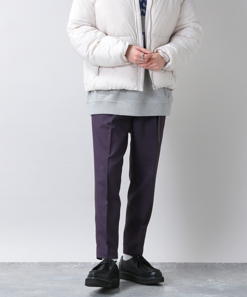 ーーー 大人気のテーパードスラックスが冬仕様になって登場。 適度な光沢感のある表面感に加えて、裏起毛にすることで保温性をプラスしました。 裾にかけて細くなるテーパードとしっかりと入ったセンタープレスが美しいシルエットに仕上がってます。 ーーー タック入りなので腰回りはゆったりとしたサイズ感で、ウエスト部分には一部ゴムを仕込んだおり、穿き心地も抜群◎ ON/OFFで使えるので一本持っておくとスタイリングの幅が広がるおすすめのパンツです。 ※サイト上のカラー名と、お届け商品に記載されているカラー名が異なる場合がございます。