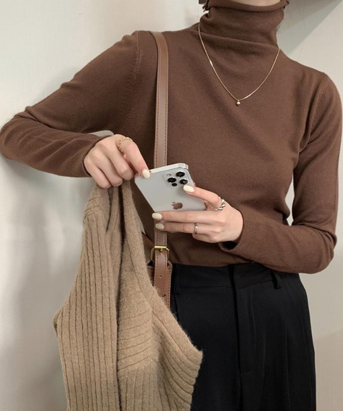 高さと柔らかさにこだわったハイネックはお好みでそのままクシュッと着たり、きっちり折って着たり、ニュアンスが楽しめる仕様に。春秋はTシャツの下に、冬はニットトップスとレイヤードして大活躍する秋から春までロングシーズンでお楽しみいただける主役級アイテムです。 そのまま1枚で着るのはもちろん 重ね着インナーとして幅広く着回しできます。
