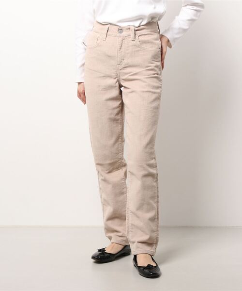 彼のジーンズを借りてきたような、少しゆったりめのテーパード(先細り)フィットタイプです。 スタイルをよく見せるハイウエストが特徴。 クールなヴィンテージ感あふれる1本。 コーデュロイ地は細めの仕様になっているのできれいめなスタイリングにも着合わせしやすくなっています。
