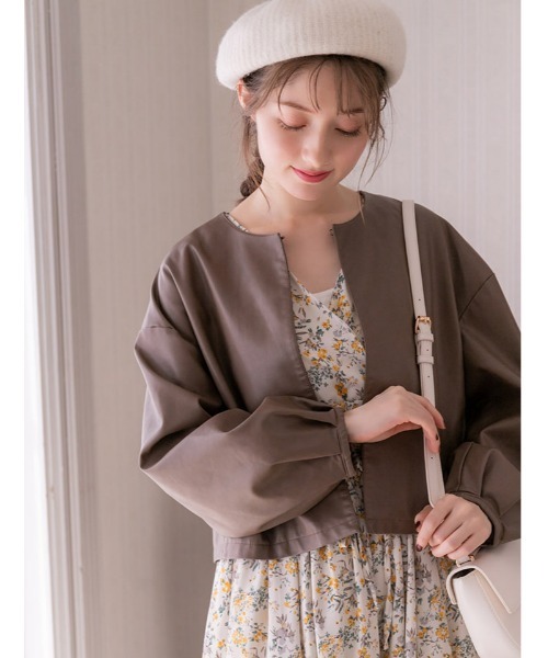 すっきりとしたデザインが魅力のフェイクレザージャケット ノーカラーですっきりと仕上げたフェイクレザージャケット。袖口にタックを入れた丸みのある袖デザインが、女性らしい雰囲気を演出します。短めの着丈なのでパンツにもスカートにも合わせやすく、ワンピースともバランス良くスタイリングできるアイテムです。 ※撮影時のライティング、PCやスマートフォンの環境により写真の色味が実際の商品と異なって見える場合がございます。ご了承の上お買い求め下さいませ。 ※モデル着用画像は実際の色と多少異なる場合がございますのでマネキン画像をご確認ください。 《 お知らせ 》 ▼商品のお気に入り登録 お気に入りアイテムの値下げ・再入荷・在庫1点などの通知を受け取ることができます。 ▼ブランドのお気に入り登録 新商品や再入荷、セール、クーポン配布などお得な情報を受け取ることができます。